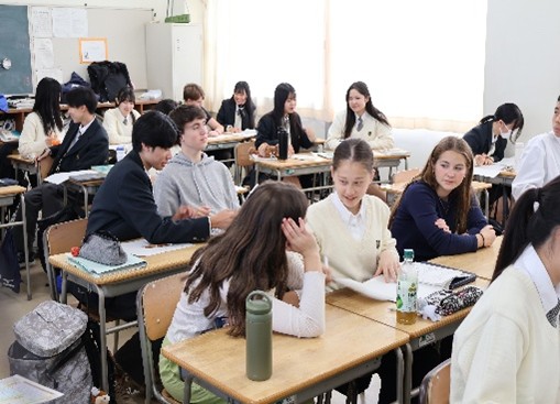 カナダの交流校パシフィッククリスチャンスクール(PCS)訪問団30名(生徒26名、教員4名)が来校されました。前日から本校生徒宅にホームステイし、この日の午前は本校で空手体験や授業を受けました。