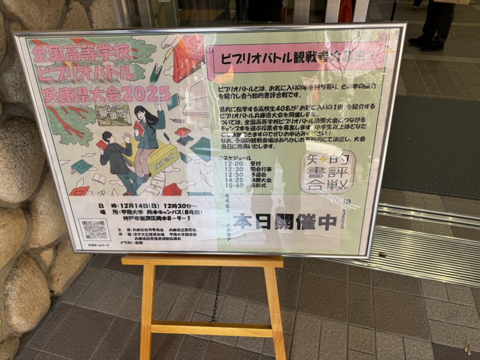 ビブリオバトル兵庫県大会に参加しました。本校からは、2年生の生徒会長のアモイアルドリアン君がビブリオバトルに参加しました。ビブリオバトルは、自身が紹介したい1冊の本を5分間で紹介し、皆さんに是非読んでみたいと思わせる大会です。アモイ君は、デール・カーネギーの「人を動かす」を紹介しました。この本を読んで、人前に立つ勇気をもらえたこと、今の自分の原動力になっていることを聴衆の皆さんに伝えました。残念ながら、決勝進出はできませんでしたが、非常に良い経験になったのではないかと思います。これをきっかけに更にプレゼン力を向上させていってくれることを期待しています!