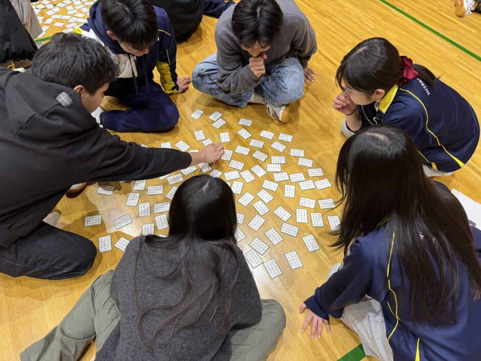 本日7限LHRの時間に、1・2年次合同で百人一首大会を実施しました。各グループ6名(1年次3名、2年次3名)に分かれて、グループごとに競い合いました。